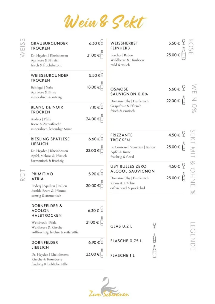 Freut euch auf frische Klassiker und moderne Lieblingsgetränke – von Aperol Spritz über Lillet White Peach bis hin zu feinen Gin-Variationen, ausgewählten Weinen und vielen weiteren besonderen Getränken, die perfekt zu einem entspannten Abend im Schwanen passen.