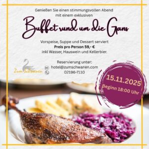 Genießen Sie einen stimmungsvollen Abend im Zum Schwanen:Am Samstag, den 15.11.2025 ab 18:00 Uhr, laden wir Sie herzlich zu unserem exklusiven Buffet rund um die