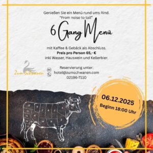 Am 06. Dezember 2025 ab 18:00 Uhr servieren wir Ihnen im Zum Schwanen ein exklusives Menü, das ganz im Zeichen des Rinds steht. Unter dem